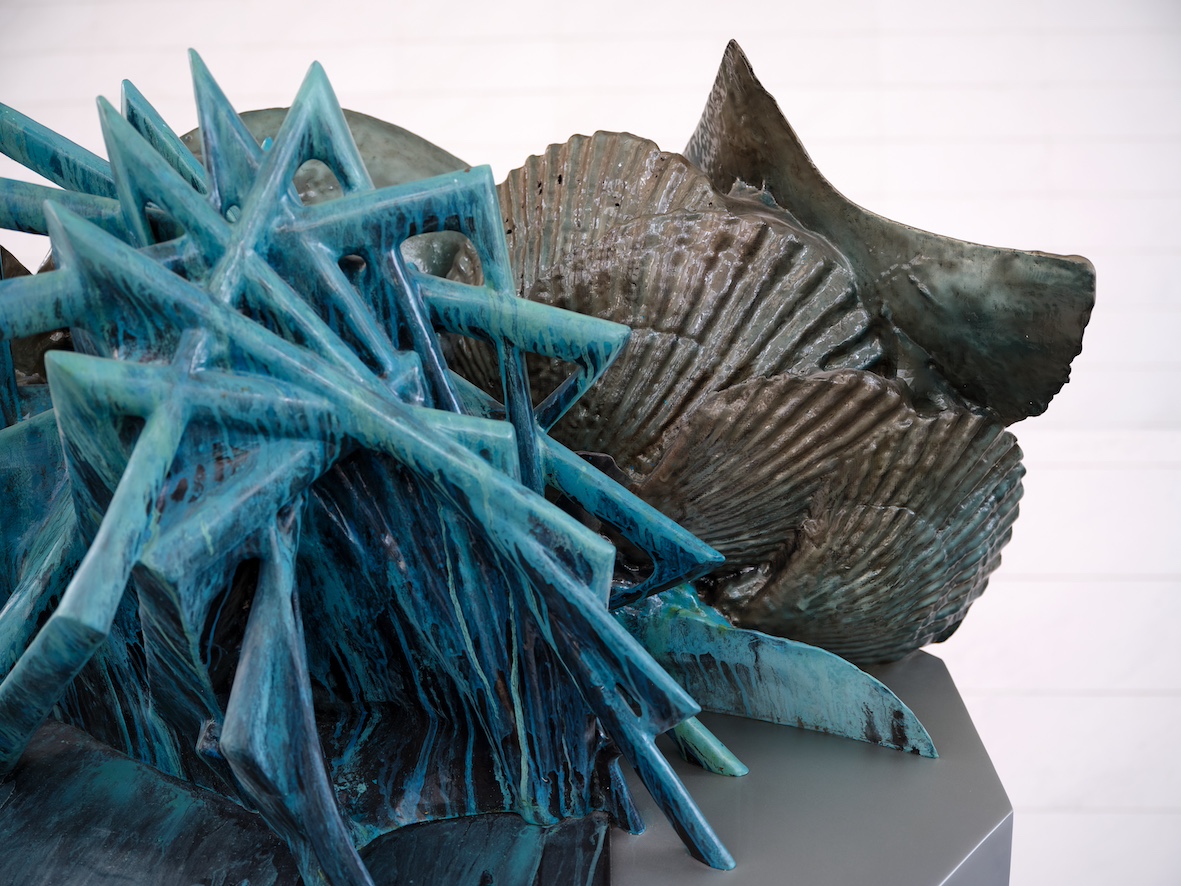 王郁洋,《共生-老练》,2023,铝、黄铜与紫铜 ,210 x 210 x 185 cm。 ©王郁洋工作室。图片由艺术家提供。Wang Yuyang, Symbiosis - Tact, 2023, aluminum, brass and red copper. 210 x 210 x 185 cm. ©Wang Yuyang Studio. Courtesy of the artist.
