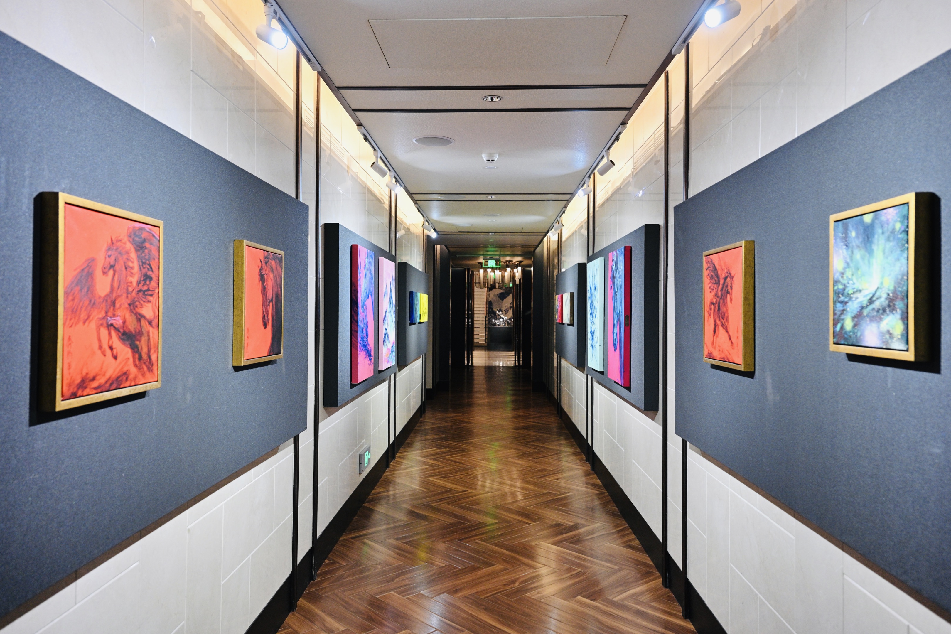 除《春之舞》外,展览亦在酒店五层公共区域呈现齐兴华标志性的“龙马”系列等共17件作品。龙与马作为中华文化中象征奋进、祥瑞的精神图腾,在艺术家笔下重构为流畅而充满力量的当代线条,既延续文化记忆,亦展现出生机盎然的时代气息。
