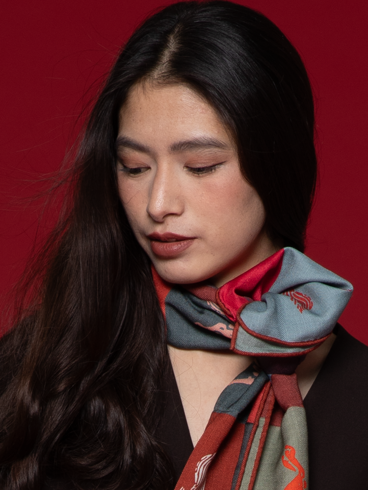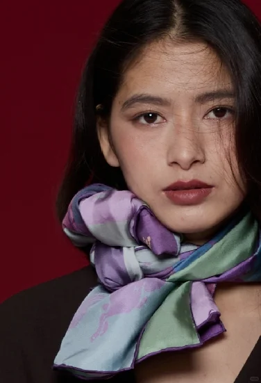“让颈肩接触自然,让自然拥抱传统”——在帕霓霓(PANINI)的创作哲学中,一方丝巾远不止是配饰,而是承载着东方美学复兴使命的移动画布。以丝巾为媒介,构建出一个连接当代艺术家、传统文脉与日常生活的小世界。